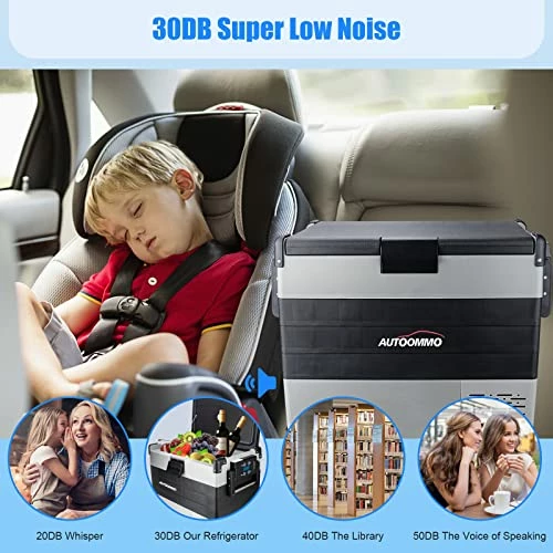 - 【Multi-Functional】: The car freezer is designed 30DB super low noise to ensure that you are not disturbed during rest even if the journey is far away. This refrigerator also has an anti-slip mat design, which can stay stable and work normally even on the steep road. Built-in LED light will help you quickly find the content you need in dim areas, equipped with two stainless steel carrying handles and an LED display touch screen.