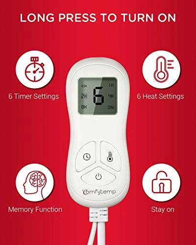 - 6 Heat Settings & 5 Auto-Off Timers: Our Comfytemp mini travel blanket offers 6 heat settings and 5 auto-off timers, allowing you to choose your favorite heat and auto-off time. Plus, the memory function helps you remember your favorite heat and timer setting and stay on keep always heat for you.