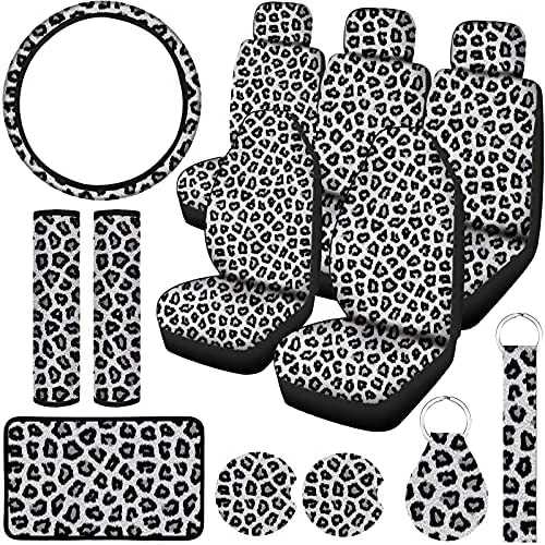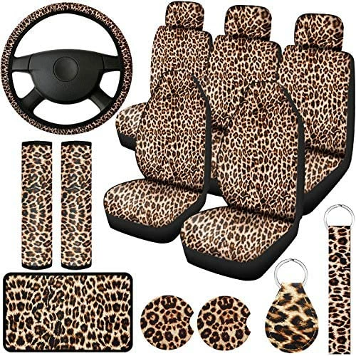 - Car interior decorations: you will get 1 piece steering wheel cover,7 sets seat covers, 2 pieces car coasters, 2 pieces seat belt pads, 1 piece wrist strap, 1 piece leopard keychain and 1 piece armrest pad cover in this package, complete car decorations kit to make your car more attractive and impressive
