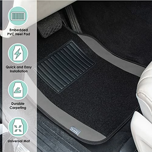 - ????[BUILT WITH SOFT CARPETING] These all purpose floor mats are made of soft carpeting, which is excellent for trapping dirt and grime and preventing it from going anywhere in your car. This material also improves the comfort of your car’s interior.
