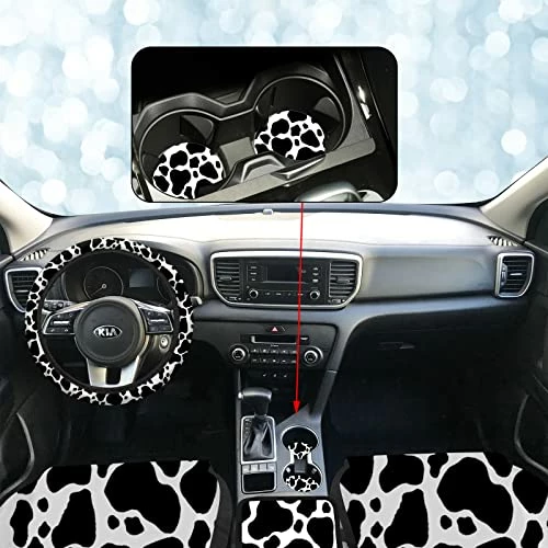 - ✔[UNIVERSAL STYLE]: Fits the size of most cars, 15-piece trim fits most full-size trucks and SUVs, bucket or oversized cars. Steering wheel cover can be straightened about 14-16 inches in diameter, coaster diameter is about 2.8 inches, shoulder straps are about 11.2 x 3.4 inches; armrest cushion covers are about 12.6 x 7.6 inches, keychains are about 1.8 x 3 inches, and wrist straps are about 6 x 0.8 inch.