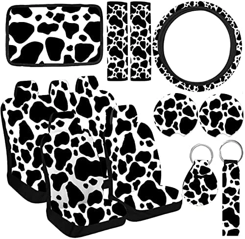 - ✔[15 PCS CAR INTERIOR KIT]: Great value combo set: 1 steering wheel cover, 2 silicone coasters, 2 seat belt shoulder covers, 5 seat covers (including 2 front seat covers, 2 rear seat covers 3 seat covers), 1 car armrest cover, 1 key chain, 1 key chain, 1 rear seat cushion cover, 1 rear seat back protection cover.