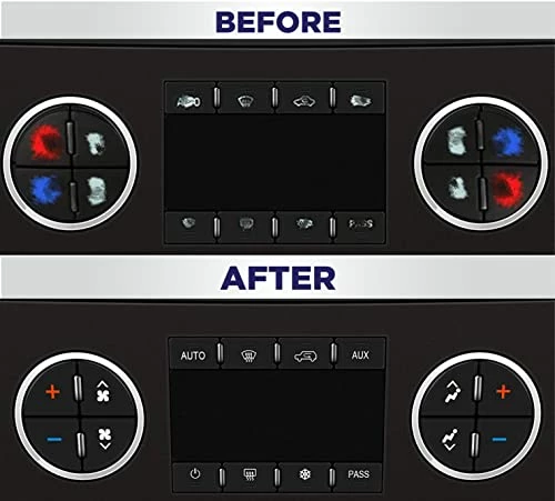 - COMPATIBILITY OF THE STICKERS: Please Refer To Amazon’s Part Finder Tool And Our Image on The Left-hand Side to Ensure Perfect Fitment For Your Car. Select your vehicles Year, Make, and Model, to make sure AC control button stickers fits.