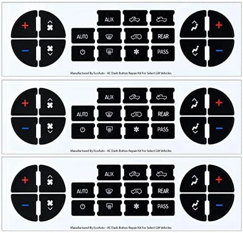 - POWERFUL ADHESIVE: AC Dash Button Repair Kit is backed with Powerful Filmed Adhesive to Utterly Reinvigorate the vehicle’s AC Dashboard. Heavy duty Adhesive Makes Sure the stickers stay in place for a long time without peeling or coming off.