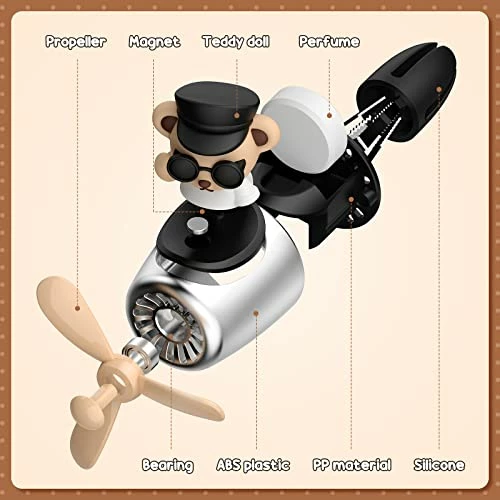 - Cartoon Bear Design: car perfume air freshener adopt adorable designs, the main shapes are retro helicopter and bear pilot, and the colors are brown and black; The blade rotates gently to meet the function as diffuser, also adding more fun at the same time