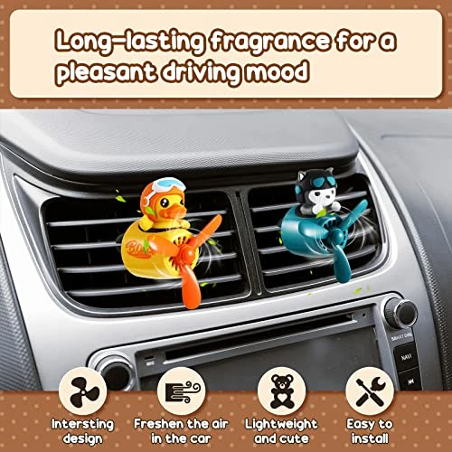 - Cartoon Design: car perfume air freshener adopt adorable designs, the main shapes are duck pilot and Hashiqi pilot, and the colors are yellow and black; The blade rotates gently to meet the function as diffuser, also adding more fun at the same time