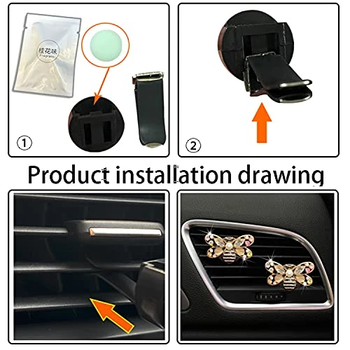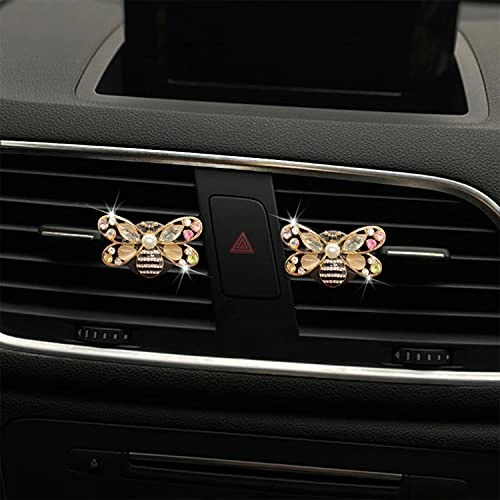 - ★Bee Car vent diffuser is made of Metal, Rhinestone materials, which lovely Decorative Car Air Vent Clip Charm is easy to install to the car air outlet to decorate the car. The workmanship is exquisite, strong and durable.you can drop little of your favorate perfume on the cotton pad when the scent dissipate