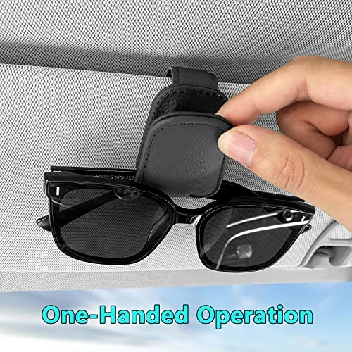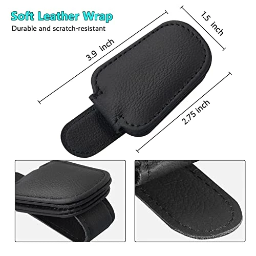- 【MADE OF QUALITY LEATHER】The sunglasses holder for car is made of quality leather, soft leather wraps the whole glasses clip to ensure that it will not damage your visor and glasses. Simple and stylish, well made.