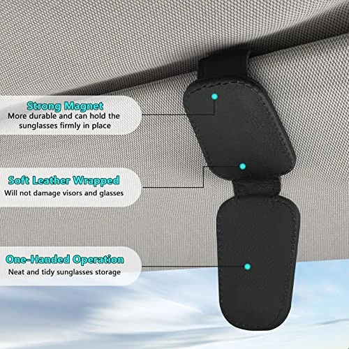 8 reviews for Deals ???? 2 Pieces Sunglass Holder For Car Visor, Magnetic Leather Eyeglass Hanger Clip For Car, Car Visor Accessories (Black) ????