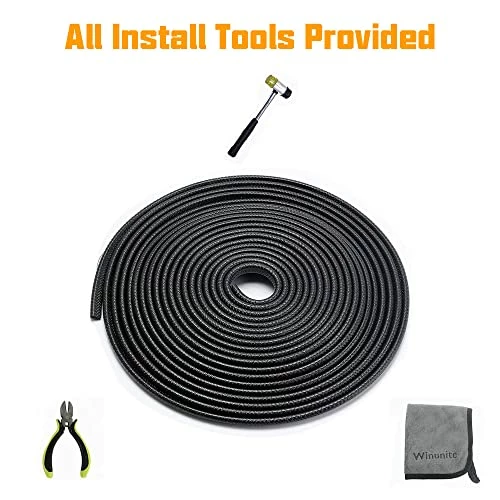 - 【DUAL HEADS RUBBER MALLET/CUT OFF PLIERS/CLEANING TOWEL PROVIDED. PROTECT YOUR CAR DOORS WITH NO GLUE EDGE GUARDS】Install tools provided.Much quicker and easier install if you use provided mallet and nippers.Prevent dings. NO GLUE. No messy. No marks. Protects your doors edges as well as those cars parked next to you. 32-4/5Ft is long enough to be installed on 4 doors on most cars. You can open or close doors as usual. Helps reduce some wind/road noise. Great gift for your families or friends.