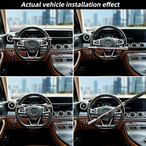 - ????【Easy to use and store】The adjustable length of the steering wheel lock is 5.3″-10.6″,Suitable for all models with inner diameter of steering wheel between 6.6″-12.5 “. The car lock doesn’t take too much time, you only need several seconds to lock the steering wheel without a key.The felt pads that stick to the metal “U” will Protect your steering wheel. It is easy to store when it is at its smallest size,It will not bring their own stretch due to shaking.