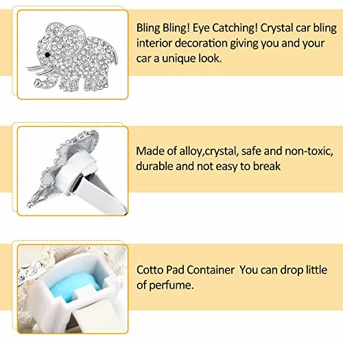 - Nice present choice: these bling and cute elephant pattern car air vent decoration is nice gifts for your friends or family who often need to drive car, suitable for embellishing the interior of many cars, crystal car bling interior decoration giving you and your car a different look, can make your car more charming