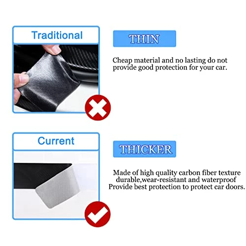 - 【Durable Protection】Car door sill scuff plate help you save a significant amount on auto body paint and restoration costs. Through their mere presence on your door jamb, door step protectors help protect your car’s auto body paint from various aspects. These factors include but are not limited to: smudges from mud or dirt, abrasions caused by footwear, scratches or scuffs caused by doors.