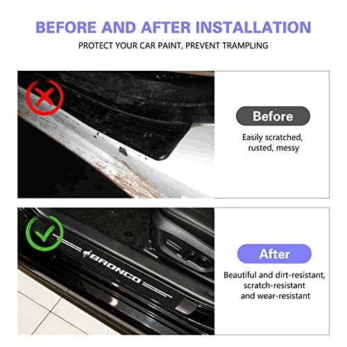 - 【Car Door Sill Decoration】Door sill decorative stickers for Bronco door entry guard make your car unique, high-end and more luxurious; Carbon fiber is cool, perfect car door sill decorative accessories.