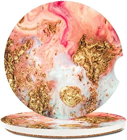 - 【High Quality Material】This car coaster is made of strong absorbent ceramic that can easily absorb the water drops outside the cup.(Set of 2)
