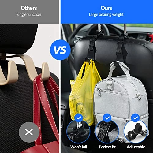 - 【???????????????????????????????? ???????????? ????????????????????】 This purse car hooks can converts your car’s headrest into a storage space, help you to keep your car interior perfectly clean and organized. The purse holder can hang groceries, handbags, purses, schoolbags, umbrellas, water bottles, shopping bags, baby supplies and much more.