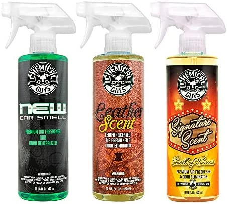 I purchased the 3-pack of New Car Smell, Leather, and Smell of Success. The last 2 were new to me and I’m glad I took the chance. Some of the bad reviews warned that the product might arrive damaged with leaking and half empty bottles. Mine were securely packaged and arrived shrink-wrapped and in excellent shape. I haven’t used the Leather or Smell of Success yet in my car, so I’m not sure about the scent longevity, but they made my gym room smell really nice without being overwhelming. I’m Very pleased with this purchase. Highly recommend and will purchasing again!