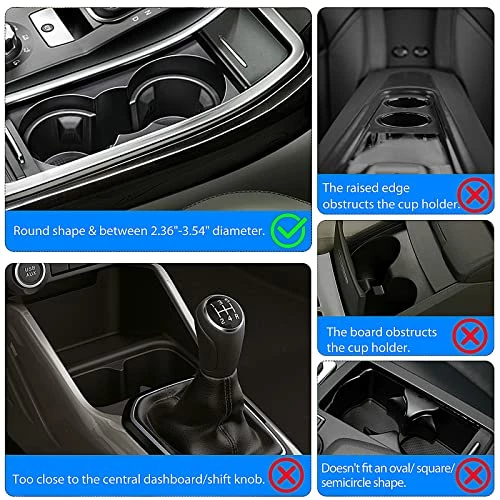 - 【USAGE ADVICE】This cup holder expander tray fits most vehicle cup holders, but it does not work well in square, hexagonal, semi-circular, recessed or hidden cup holders. Please compare your vehicle cup holder to this product before purchasing.