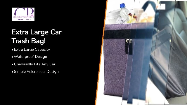 - XL AUTOMOBILE TRASH BAG: One of the largest in the market. Dimensions are 12H x 11L x 6W inches and its capacity is 3.4 gallons.