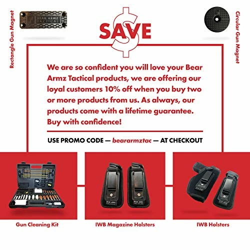 Bear Armz Tactical Premium Gun Magnet comes with a 100% Satisfaction Guarantee so you can buy Worry Free and with Confidence.