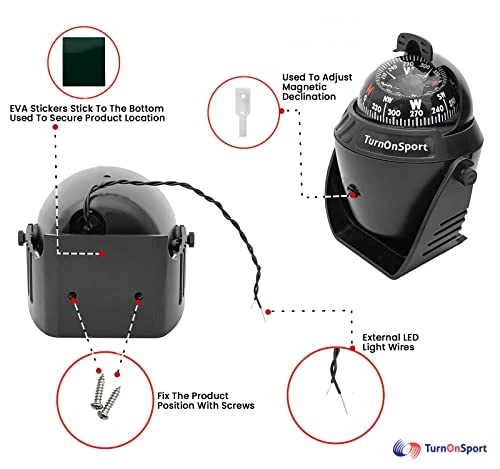 - INCANDESCENT LIGHT DISPLAY: Two power cords on this boat’s marine compass can be linked to the power supply 12V dashboard of a boat or sea ship. Compass for boat comes up with incandescent light to fix lighting issues. Now, you can clearly see the dial whether you’re driving or sailing during the night