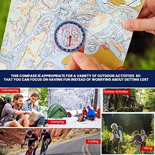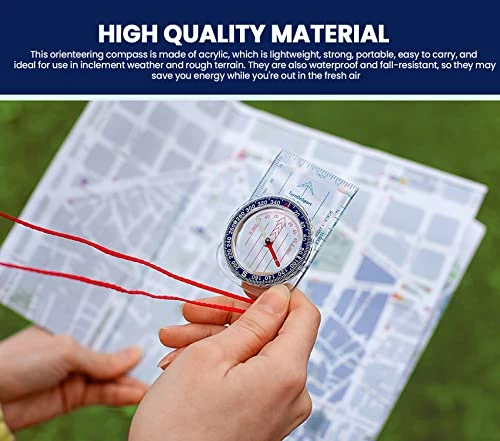 - HIGH QUALITY MATERIAL: This orienteering compass is made of acrylic, which is lightweight, strong, portable, easy to carry, and ideal for use in inclement weather and rough terrain. Portable backpacking mini compass are also waterproof and fall-resistant, so they may save you energy while you’re out in the fresh air