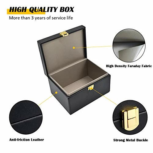 - STYLISH & PRACTICAL – This faraday box is made from the finest materials, externally made with PU leather and internally lined with a premium RF shielding. This stylish and sophisticated box will fit well in any area of your home with a prestigious and elegant feel to it.