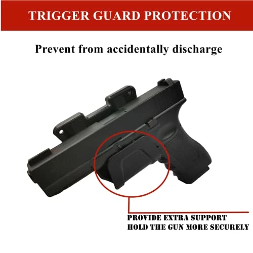 - 【TRIGGER GUARD PROTECTION】:The Bugleman Magnetic Gun Mount is fully covers the trigger to prevent from accidentally discharge. The trigger guard protection provides extra support to hold the gun more securely.It is good to use in the car, truck, vehicle, office, doorway,cashier, bedside,table and desk .
