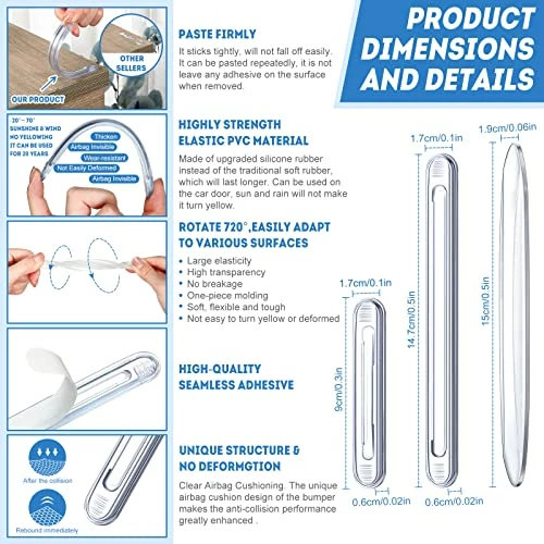 - Reliable material: car bumper protector adopts PVC material, soft but strong, not easy to turn yellow or deformed; It is resistant to high and low temperatures, can withstand a temperature range of – 20 ~ 70 degrees Celsius, suitable for use in a variety of environments; The transparent material allows it to be applied with a variety of items without affecting the appearance