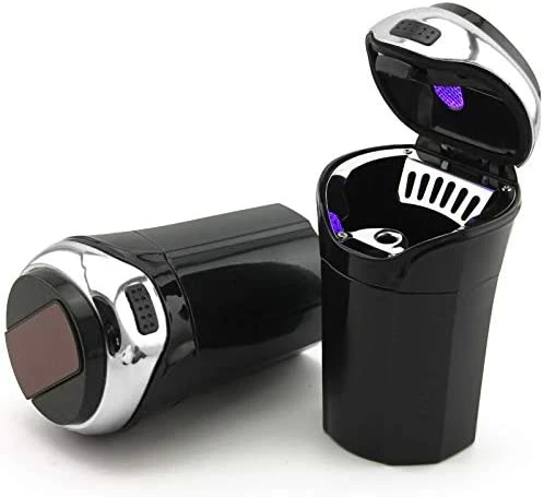 - COOL BLUE LIGHT & CIGARETTE LIGHTER: when you open and lift the lid, the ashtray cool blue LED light will light up automotively, increasing night vision and making sure you can see the tray. A removable cigarette lighter included, gently get it out, pressing the lighter switch and lit cigarette in your car conveniently.