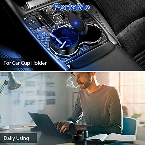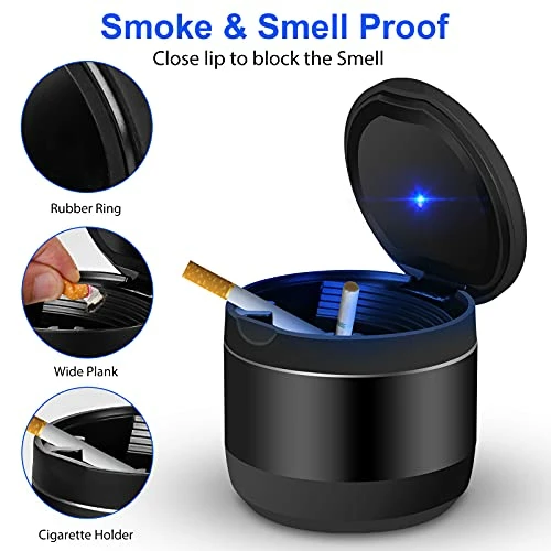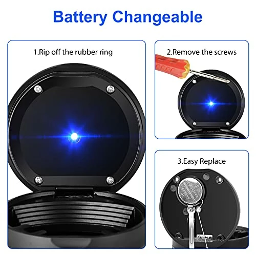 - Blue Light: When you open and lift the lid, the cup holder ashtray cool blue LED’s light up automotive. The led illumination increases night vision and makes sure that you can see the tray, keep the ash in your car ashtray, prevent ash from flying.