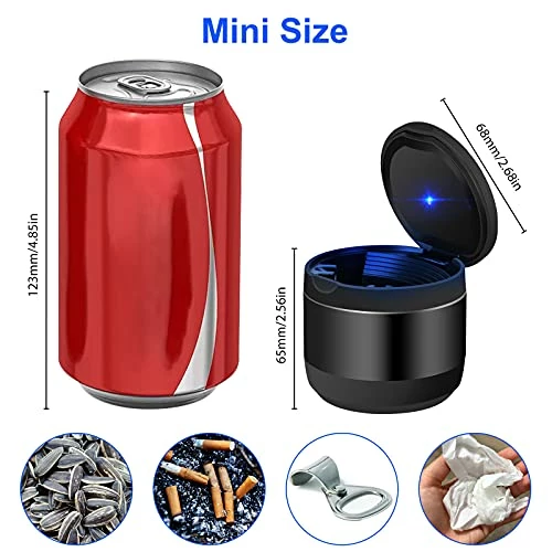 - Mini Size: Our portable ashtray with lid is incredibly compact and Small in size, you can be carried anywhere. such as travel, camping, and outdoor. It is also suitable for cars, vans, trucks, and SUVs and will fit snugly in most interior cup holders.