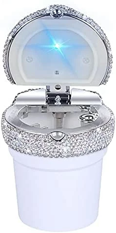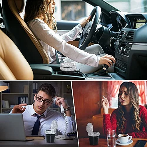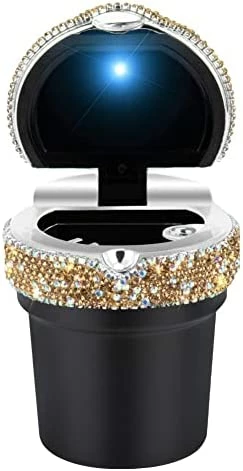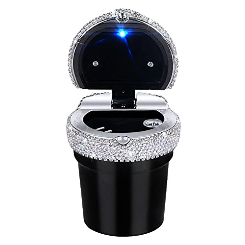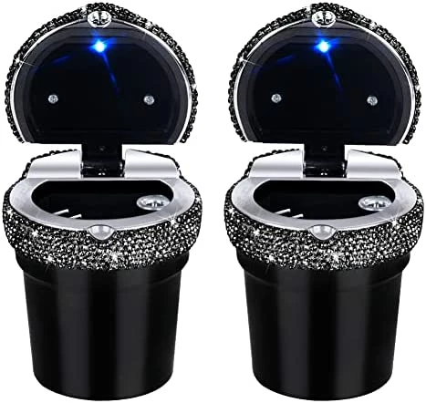 - [LUXURY CAR ASHTRAY] – Decorated with high-quality sparkling rhinestones on top, fashionable and stylish car ashtray with lid, easy to carry and fits most auto vehicle car cup holders. For more options, you may visit our store to find other bling crystal auto accessories that match this ashtray,so as to improve visual unity for car’s interior .