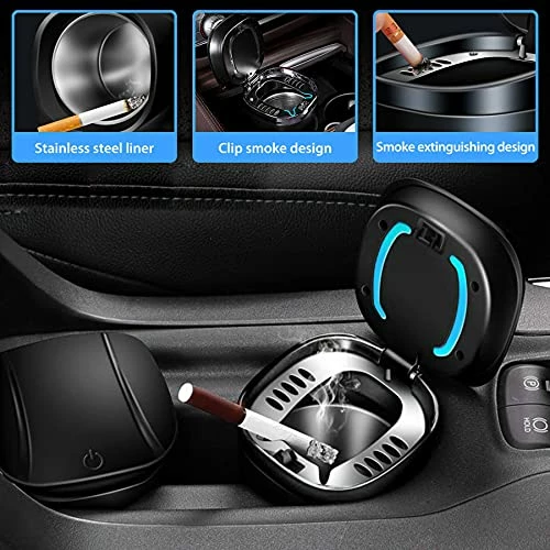 - Material: Car ashtray with lid smell proof is made of stainless steel and high-density fireproof material, is non-flammable, which can isolate oxygen and make the fire extinguish quickly in the interior.