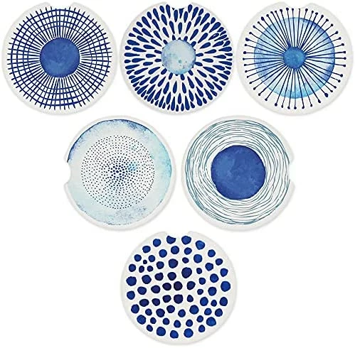 - ???? MOISTURE ABSORBENCY – Made from absorbent ceramic stone that can easily absorb the liquid drops and the moisture outside the cup/ mug. This means you will never have a puddle of water left behind and the coasters don’t stick or cling to the cups. Protects your holder and keep your car cup holder dry and clean.