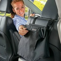 I have this hooked to the headrest of my passenger seat facing forward so i can easily take out a tissue or throw food wrappers away while I’m driving. When i have someone in the passenger seat i just flip it to the back of the headrest. It’s been a great tool for keeping my car clean and picked up and it opened up a bottle holder that i used to use as a trash bin.
