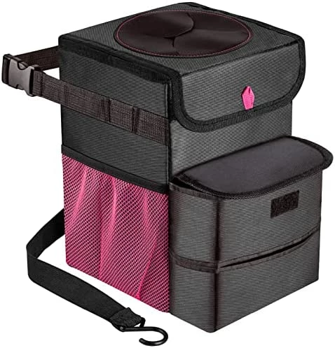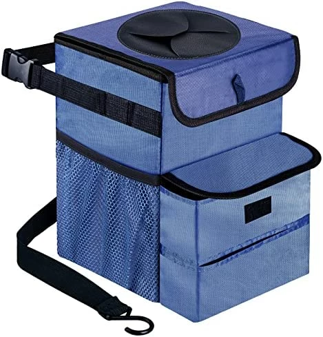 - Keep Car Clean: This foldable car garbage bin has a rubber opening soft lid and Velcro seal can block inter smell. You can throw away waste tissues, fruit skin and bottles without lifting the lid. Just fold it to save space When you don’t use.