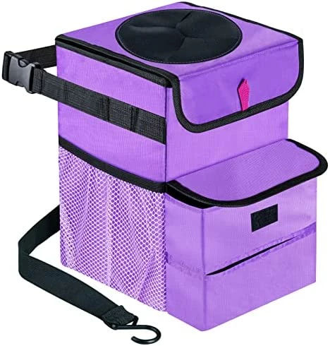 - Easy to Use: Our trash bag measures 7.9″L x 11.8″H x 7.9″W, about 3 Gallon/12 L capacity. A suitable size to hang it on seats’ headrests, gear stick, behind console, glove box or put on the floor. 4 colors to choose: Black, gray, navy and purple.