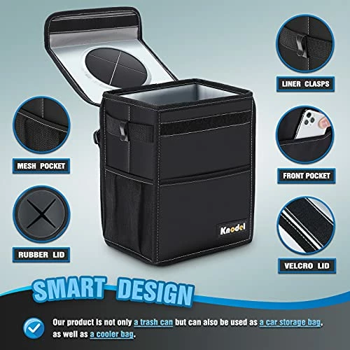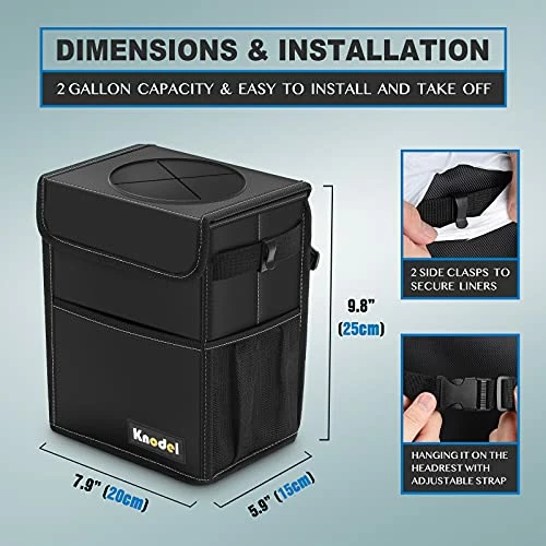 - GIVES YOU A CLEAN CAR – Due to the sufficiently long adjustable straps, the K KNODEL car trash can is able to be placed anywhere, so it is suitable for all kinds of vehicles. With a large storage capacity, you can throw all kinds of trash into it, while it gives you a clean and tidy car.