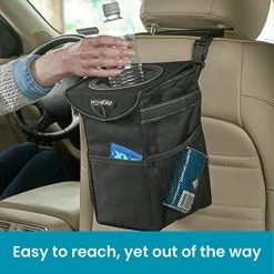 - SMART MULTIPURPOSE DESIGN – Our product is not only a trash can but can also be used as a car storage bag, since it has large capacity and it also features 2 mesh pockets and 1 front pocket for you to organize small items. This smart multifunctional product can be also used as a cooler bag. The thermal insulated waterproof liner holds ice to keep drinks and food cold for hours in the car.