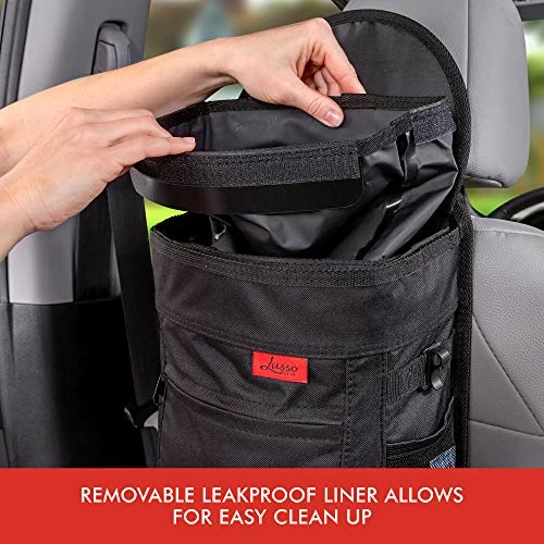 - Spill-Proof Design: A removable leakproof liner lets you contain any spills before they happen as you can remove the liner rather than the whole car trash bin. Hooks give you the ability to use an extra disposable bags for further protection.