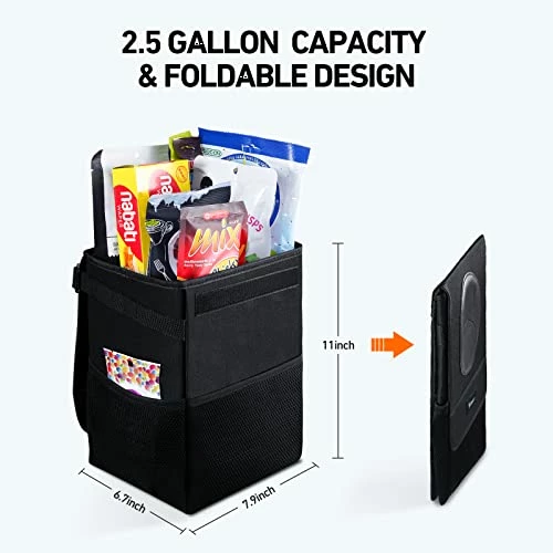 - COMPACT & FOLDABLE DESIGN: The trash can for car adopts a foldable design, which can be stored in any area.Adjustable strap allows it to be attached on both headrests and center consoles easily.