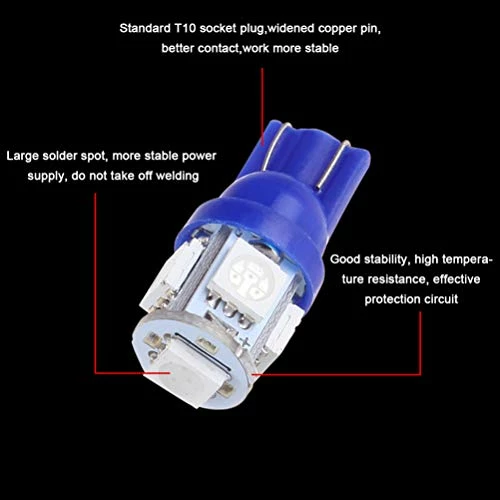 Best Sale ???? Cciyu (10) T10 5-5050-SMD PC194 Blue LED Bulb Instrument Panel Cluster Dash Light Twist Lock Socket ????