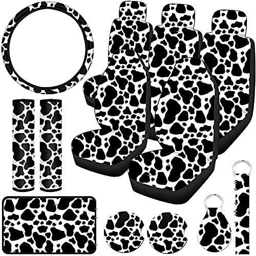 - Lovely cow craftsmanship:our cow print car seat covers full set adopts exquisite cow print design style,simple yet elegant,lovely and vivid,which can match the interior environment of most cars and appeals to the taste of many men and women; These accessories can not only decorate your car,but also protect your car from dust,tear,water,stains and more