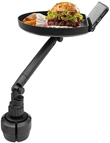 - UNLIMITED ADJUSTABILITY: Designed with 360° swivel capabilities and a jointed arm, our cup holder table will allow you to adjust the table to the perfect position or, swivel the tray back and forth between you and the passenger.