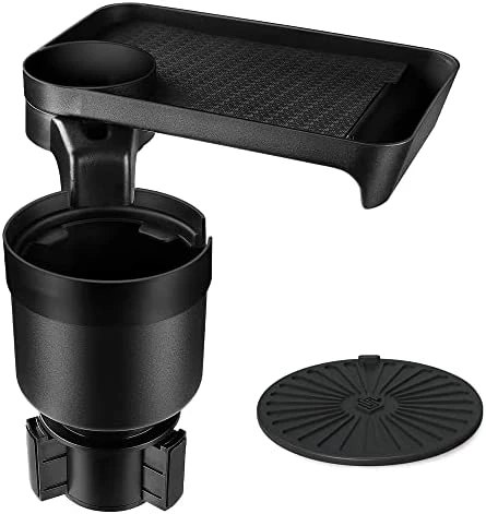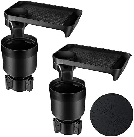 - EASY TO INSTALL – First, rotate the cup holder expander until prongs extend and tighten against car’s cup holder, rotate clockwise to expand, rotate counterclockwise to restore. Then inserted the tray into the slot. Put the included tray pad and coaster to the corresponding position, and the installation is complete. Easy to assemble/dissemble and clean. cup holder with tray is absolutely the excellent gifts for anyone with busy schedule and needs more space in the car.