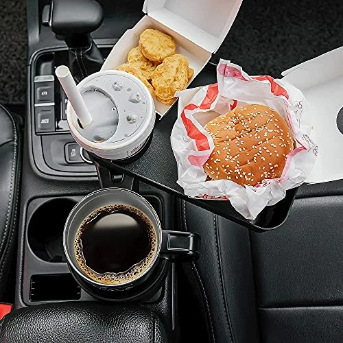 I purchased this cup holder and tray for my grandson to have a place to sit his food on the days I pick him up from school. We always grab fast-food while waiting for one of his parents to finish up work. I looked at so many of these cupholders & trays and read SO many reviews. Mostly good reviews but several bad reviews also. I really wanted to try it out for myself so I made sure to purchase from someone who would take returns incase the item wasn’t as described. I AM SO GLAD I TRIED THIS ITEM FOR MYSELF! I ABSOLUTELY LOVE IT! Some of the negatives were that the cupholder was hard to install…Well that was false… You simply place it in the vehicle cupholder and turn it a bit and it tightens up. Another complaint was it would work itself loose… So I’m constantly checking and it hasn’t loosen up any in weeks so far. Another complaint was the item isn’t sturdy… My grandson just turned 11 a couple weeks ago. He’s pretty tough on things and the tray is still holding up to him which is impressive. We aren’t putting heavy items on the tray mostly fast food, but no issues so far. Now, I will agree that it’s a little pricey but I drive a Toyota Tacoma 4 door. I always have a lot of items in the backseats, so I don’t have a lot of room to adjust the front seats. I really needed the room for him to be able to place his food somewhere safe without dumping it in the seats or floor. The cupholder part that fits into the vehicle cupholder holds my large RTIC cup. The cupholder on the tray doesn’t have a bottom in it, so a bottle of water will not work in it, but a fast-food cup works great. The large sweet tea he gets fits without any stress of weight to the tray. Oh and the tray is removable if needed but so far I have left it attached. When my grandson isn’t using it for food I have tossed my personal items on it such as cellphone etc. Some people complained that the tray covered their gearshift and actually it does if you have it moved out of the passengers way, but that’s not a big deal to me right now. This truck I’m in right now is an automatic and there’s enough room for me to reach under the tray to shift into reverse or drive. If you’re driving a stick that could cause you an issue but you could always remove the tray if it’s not in use. I think I’ve covered everything that had made me a little leery to make the purchase. Just make sure whoever you purchase from allows returns so if you don’t like it you can return it. I usually do not write long reviews like this but I felt like I would be fair to this product after receiving and using it after I had read the negatives, which turned out not to be true, as far as I have seen for myself, except it being pricey. So basically it’s sturdy, easy to install but a truth is, it is a little pricey. So far it’s been totally worth it though.