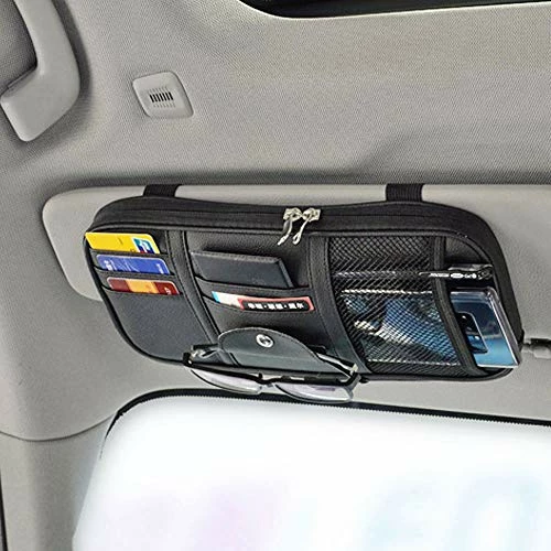- Multi-function Organizer on Car Sun Visor: Are you still troubled by the clutter in cab of your car? We have well-designed a organizer for your visor that can store many small items, Your car will be more comfortable and clean, and make you happy when driving.