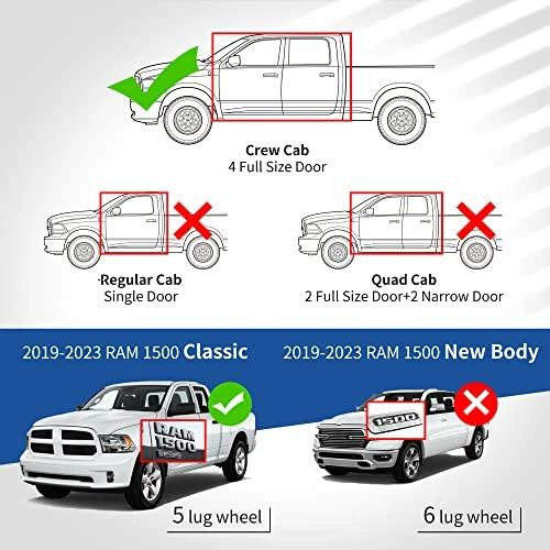 - Vehicle Service Type: Compatible with 2012-2018 Ram 1500/2500/3500 Crew Cab ( Fits 2012 Ram 1500 Crew Cab with Driver and Passenger-Side Floor DUAL Hooks ONLY — NOT for Single Driver’s Side Floor Hook); Compatible with 2019-2022 Ram 1500 Classic Crew Cab ONLY; Doesn’t fit 2019-2021 Ram 1500 Crew Cab; See more
