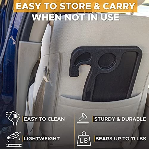 - Classic and Sturdy Design: Slim and lightweight design of the portable car desk for laptop measuring 11″ x 16.5″ x 0.79″ will fit right under the seat pockets easily and can be mounted effortlessly whenever needed!